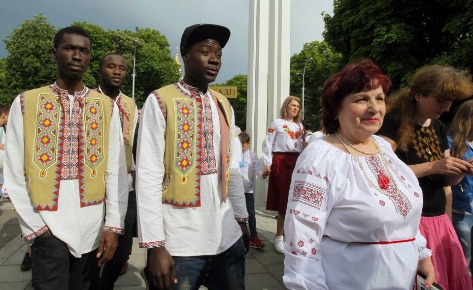 В Харькове местные националисты устроили шествие в сельских вышиванках по главной улице города – Сумской.