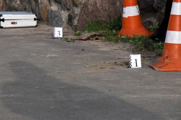 Рядом с местом инцидента разбит пивной бокал, кровь и гильзы.