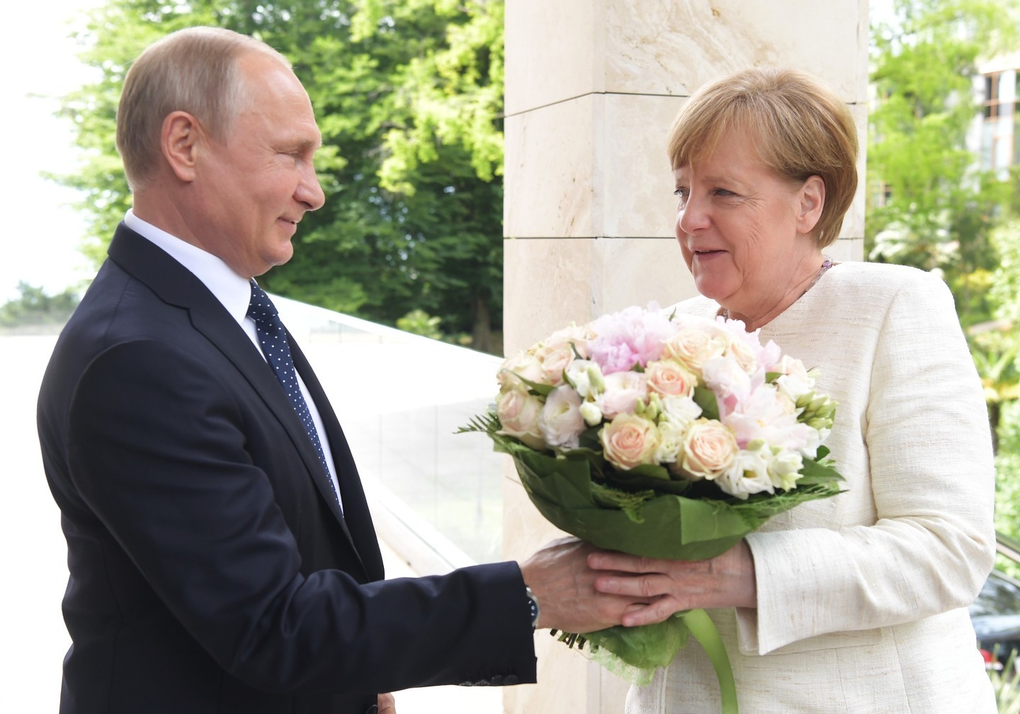 Как уже сообщалось, журналисты Bild увидели некий "скрытый смысл" в подаренном букете Меркель со стороны Путина. По мнению журналиста издания, российский лидер таким образом "хотел напомнить канцлеру, что она женщина". Источник