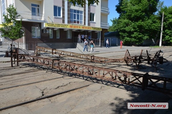 Сегодня, 23-го мая, в городе Николаеве произошло грандиозное событие - его посетил пРезидент украины Вальцман, то бишь Порошенко. Буквально за пару-тройку часов до сего исторического события на улице Потёмкинской рухнуло несколько столбов, которые служили опорами для электрических проводов, в том числе и трамвайных.