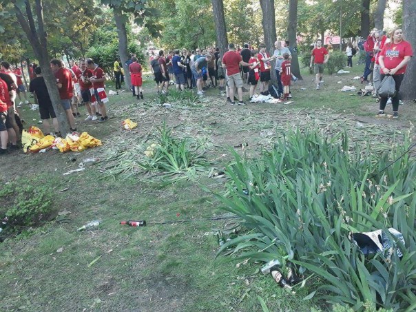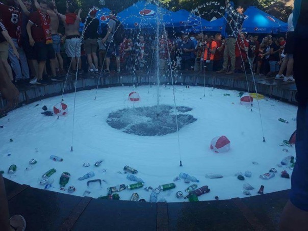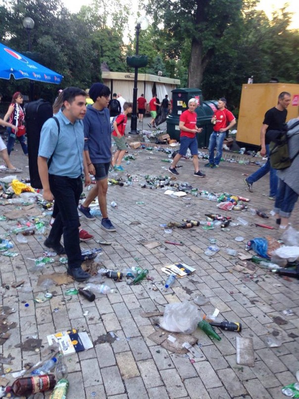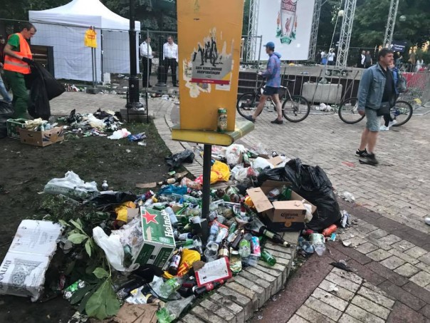 Это фан-зона "Ливерпуля" в парке Шевченко. Вот подумалось - а может это хорошо, что британские СМИ призывают не ехать английских болельщиков в Россию на ЧМ-18?