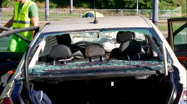 Два человека сидели в переднем кресле возле водителя, пятеро на задних сидениях и двое ехали в багажнике. Для эвакуации последних пожарные использовали спецтехнику.