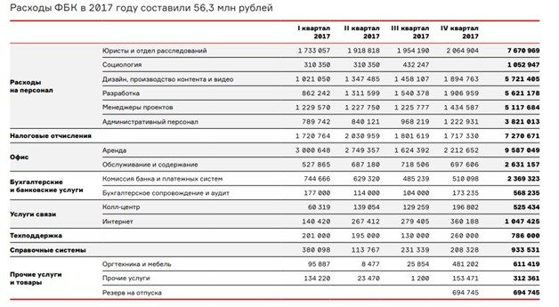 Деньги в ФБК испаряются и при формировании зарплаты и просто так. Согласно отчётам средняя зарплата там составляет 68 762 рублей – это примерно 20 миллионов зарплатного фонда в год. 7 миллионов указано, как налоги, а общие расходы по статье 29 миллионов. Куда делось 2 миллиона?