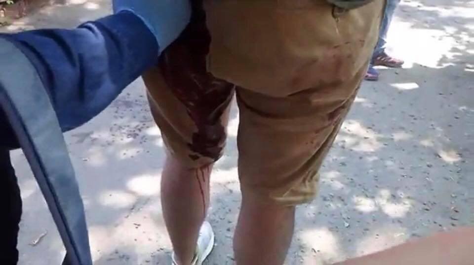 В результате нападения Устименко был ранен в бедро, также ему разбили голову.