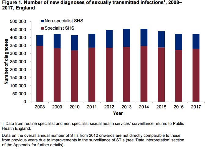 В 2017 г. в Англии зарегистрировано 422 147 новых диагнозов ЗППП.