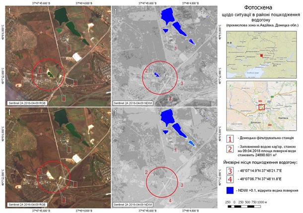 "Повреждения Южно-Донбасского водопровода в районе промышленной зоны г. Авдеевка Донецкой области, вероятно возникли вследствие применения тяжелого вооружения. На спутниковых снимках 2018 года можно увидеть значительный водоизлив, которого не было в 2016 году", - говорится в сообщении укропского так называемого "Министерства по вопросам временно оккупированных территорий и временно перемещенных лиц".