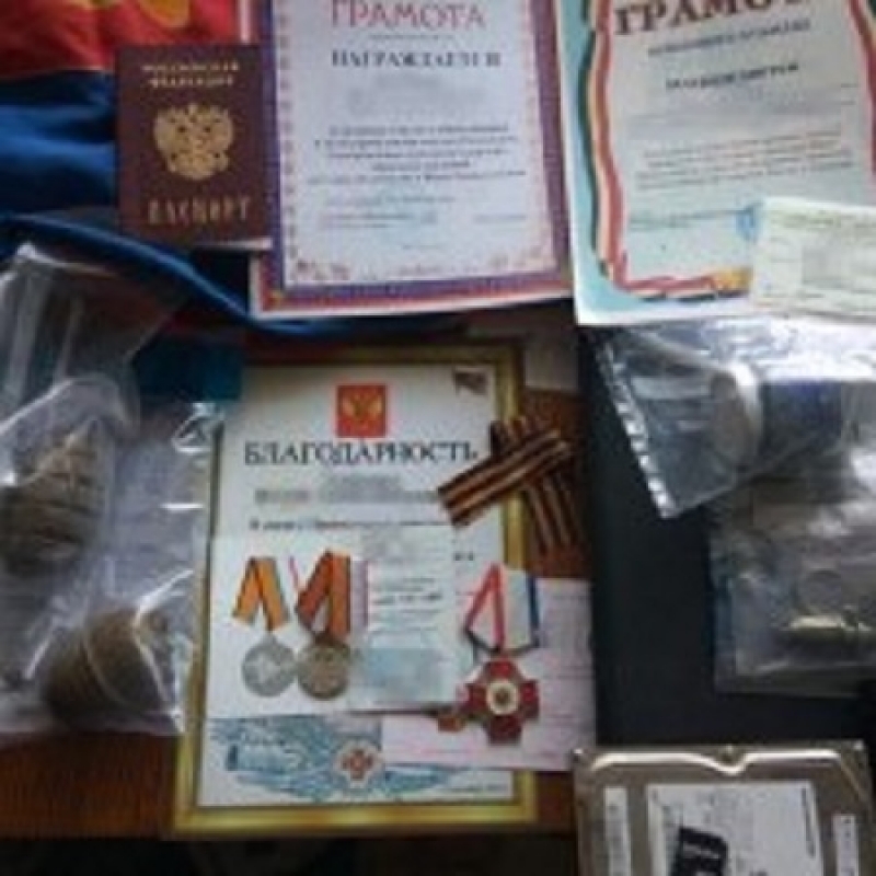 В доме участвовавшего в «Русской весне» мужчины провели обыск и нашли множество доказательств его «преступления». Сообщается, что у «шпиона» обнаружили ручные гранаты, российские документы:русский паспорт и пенсионное свидетельство, а также традиционный набор, изымаемый СБУ в таких случаях - георгиевские ленточки. Сообщается, что в доме по месту жительства мужчина хранил медаль «За возвращение Крыма», грамоты казацких организаций и справку из сельсовета об «участии в обеспечении гражданского порядка на предвыборном участке».