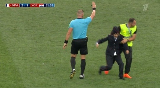 Инцидент произошёл на 52-й минуте матча, Франция к тому моменту вела в счёте 2-1. О чём думали эти создания, остаётся только догадываться. К событиям финала было приковано внимание всей международной общественности. А тут такой позор, но, разумеется, опозорили они только себя.