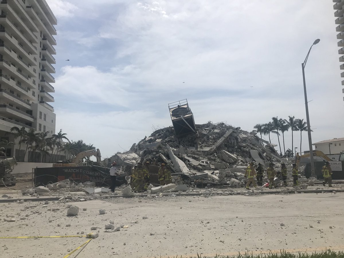 В США в городе Майами-Бич после обрушения 12-этажного здания пострадал один человек. При этом под завалами ещё могут находиться люди.