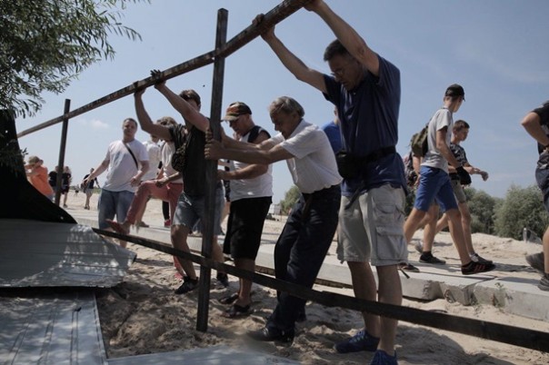 По ее информации, полиция в полдень получила вызов, что неизвестные сломали забор вокруг застройки.