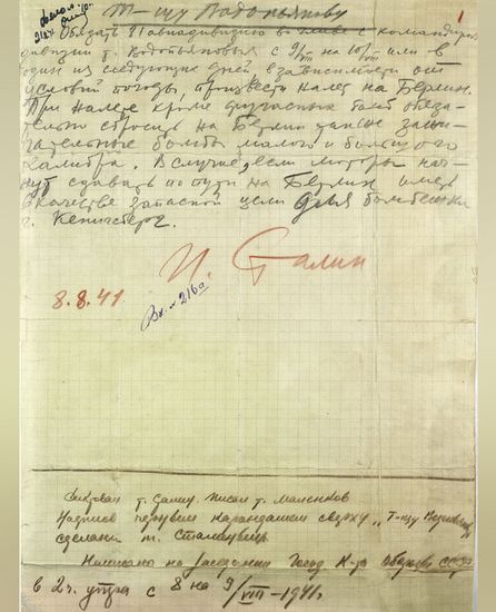 Приказ Сталина о бомбардировке Берлина. Фото: © Минобороны РФ