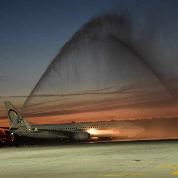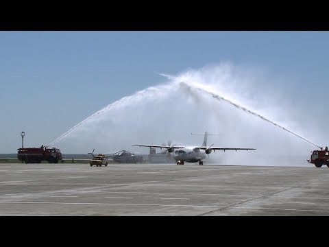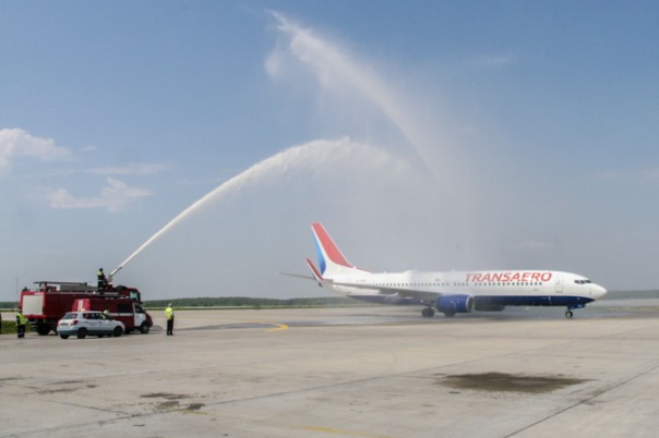 В авиационной индустрии много добрых традиций, одна из них - встречать первый лайнер нового регулярного рейса водяной аркой.