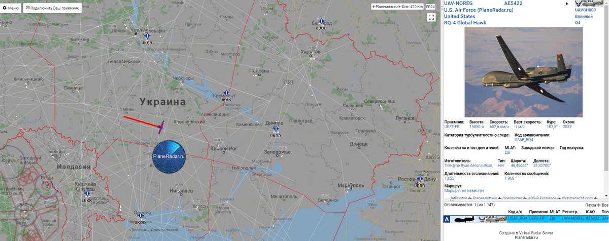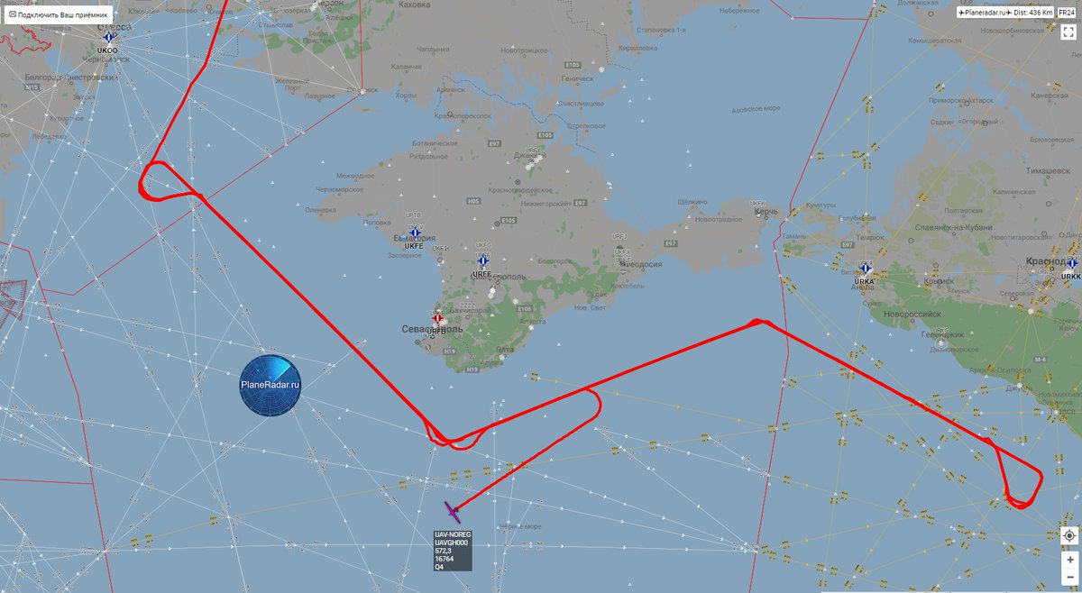 По данным ресурса Plane Radar, беспилотник вылетел с авиабазы НАТО Сигонелла в Италии и в 12:19 по московскому времени начал мониторинг линии разграничения на Донбассе. Закончив облет, аппарат со стороны Николаевской области Украины направился к побережью Крыма и Краснодарского края.