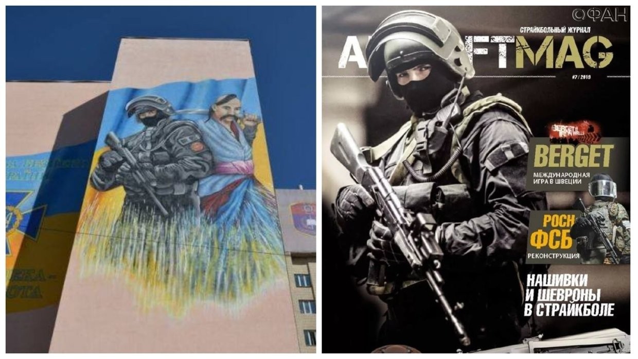 Ряд СМИ уже указал на тот факт, что фигура «спецназовца СБУ» скопирована с фотографии на обложке страйкбольного журнала AirsoftMag, на которой изображен один из участников белорусской команды РОСН в форме сотрудника спецназа ФСБ. Также об этом написал пользователь Facebook Денис Гороховский, отметивший сходство фигуры на граффити и спортсмена на обложке журнала.
