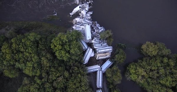 #Transport: Freight train derails in #Alton #Iowa; some cars plunge into river. pic.twitter.com/B5s9fvNQSm
