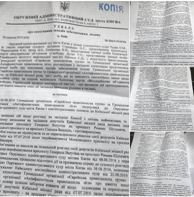 Напомним, 1 июня 2017 года Киевский городской совет принял решение о переименовании проспекта генерала Ватутина в проспект имени Шухевича. После чего возмущённые киевляне и правозащитники принялись законно добиваться отмены данного решения. Источник
