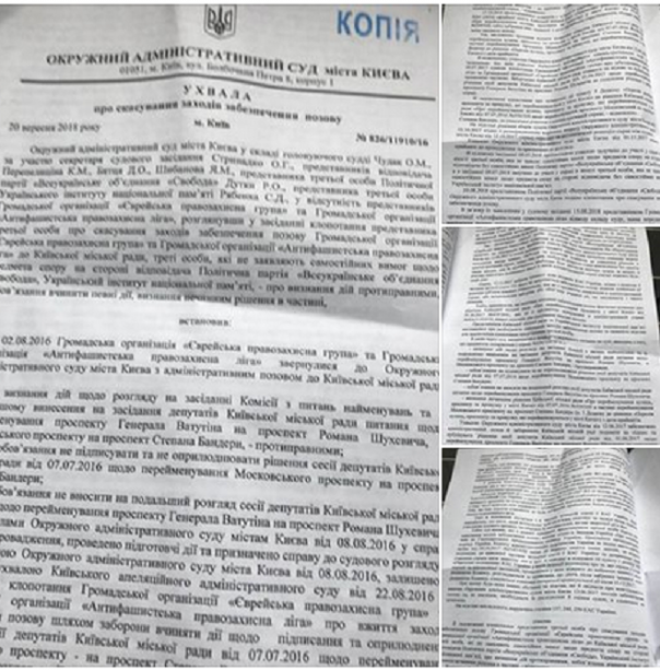 «Это значит, что несмотря на принятое решение Киевсоветом, проспект продолжает носить имя Настоящего Героя — Ватутина!», — поделилась новостью правозащитница, обнародовав решение суда.