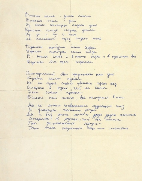 Также были проданы автограф и рукопись песни (3,6 млн рублей), записная книжка с телефонами рок-тусовки Москвы и Петербурга тех времён (3 млн), черновик (550 тысяч). Почти все лоты, кроме последнего, достались одному покупателю.