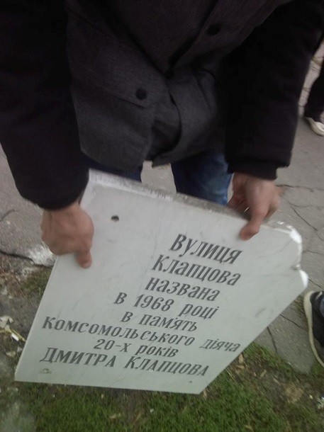 В Харькове 27 сентября активисты демонтировали и разбили мемориальную доску основателю комсомола в городе и одному из главных организаторов первой красной оккупации Харькова Дмитрию Клапцову. Об этом сами активисты сообщили в социальных сетях.