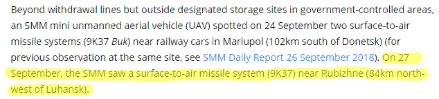 Там указали, что три зенитно-ракетных комплекса (9K37) обнаружили на железнодорожной станции в подконтрольном Киеву городе Рубежное 28 сентября.