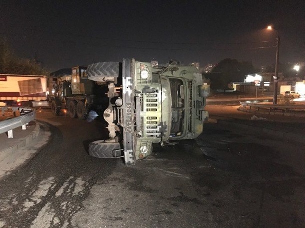 В Киеве в понедельник, 22 октября, перевернулся военный грузовик.