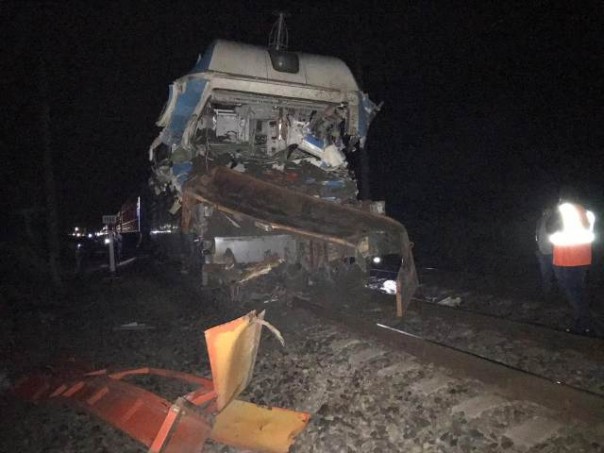 15 пассажиров получили легкие травмы. Члены локомотивной бригады и водитель грузовика были госпитализированы, передает ТАСС. После замены локомотива состав продолжил движение.