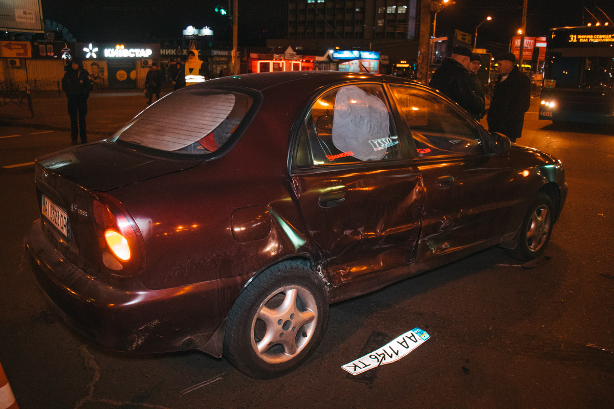 Позже участник второй аварии - водитель Lanos - рассказал, что он пересекал проспект Степана Бандеры на зеленый свет и ехал в сторону станции метро Почайна. А в этот момент по Бандеры в сторону Северного моста ехал Mitsubishi. По неизвестным причинам произошло столкновение. Водитель из Lanos предположил, что Space Star проигнорировал запрещающий сигнал светофора и из-за этого произошло ДТП. В результате столкновения пострадала девушка, она сидела на заднем сидении.