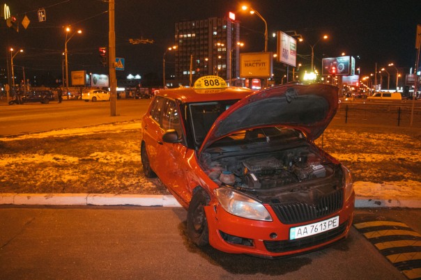 Как рассказал водитель Octavia, он ехал со стороны станции метро Почайна в сторону Оболонского проспекта, а Fabia поворачивал с Оболонского проспекта на проспект Степана Бандеры в сторону Северного моста. Полицейские отметили, что предварительно, обе машины ехали на зеленый сигнал светофора. От удара две Skoda получили серьезные повреждения, кроме этого, Fabia вылетела за пределы проезжей части и остановилась на газоне возле заправки.