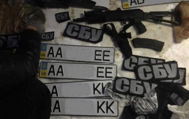 Во время одновременных обысков по адресам фигурантов обнаружены спецодежда, шевроны СБУ, поддельные удостоверения различных правоохранительных органов, оружие, боеприпасы к нему, ножи, маскировочная одежда, балаклавы, рации и множество государственных номерных знаков, которые использовали во время разбойных нападений.