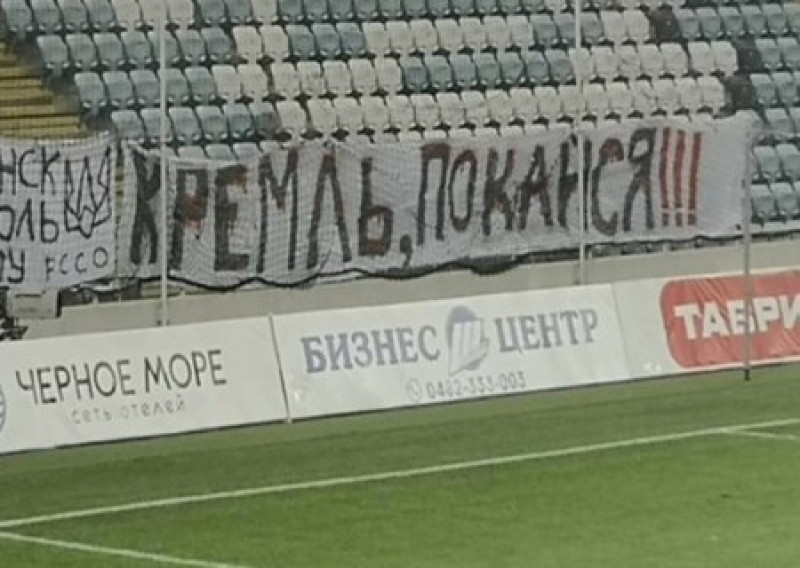 После матча украинской премьер-лиги «Черноморец - Ворскла» в Одессе под фанатским сектором правоохранители задержали более 20 ультрас, вывесивших баннер с надписью «Кремль, покайся».