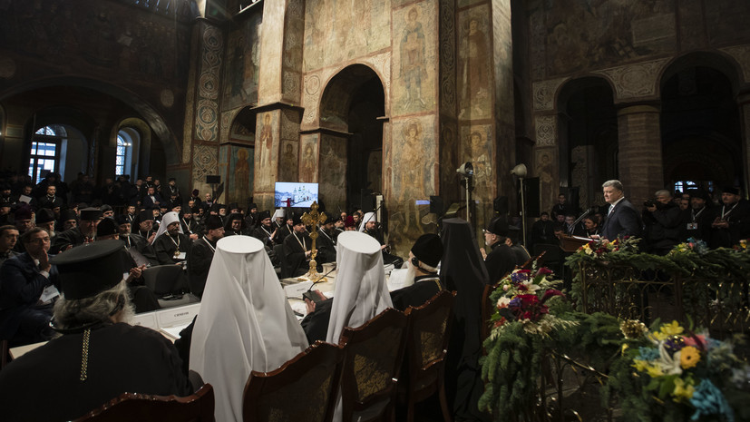 Ранее сообщалось, что в храме Святой Софии в центре Киева открылся «объединительный собор» под эгидой Константинопольского патриархата. Источник