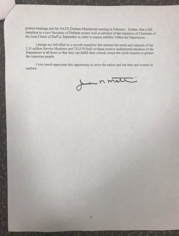 Между тем хозяин Белого дома поблагодарил главу Пентагона за работу. "Генерал Джеймс Мэттис уйдет в отставку, с почетом, в конце февраля. Он проработал в моей администрации в качестве министра обороны последние два года", - написал Трамп в своем Twitter.