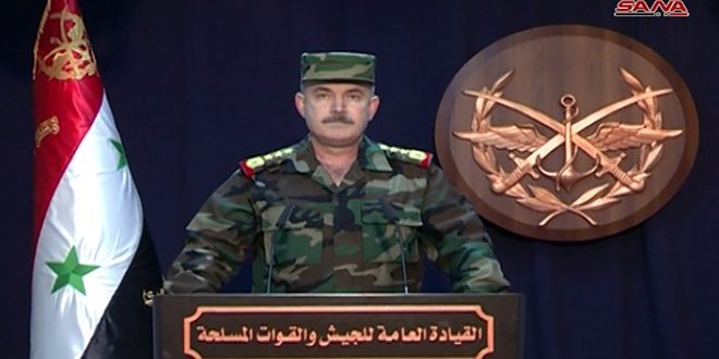 Командование добавило, что, подчеркивая важность согласованных усилий всего сирийского народа в деле сохранения национального суверенитета, оно вновь настаивает на разгроме терроризма и изгнании захватчиков и оккупантов с сирийской земли, поскольку Сирийская Арабская армия призвана гарантировать безопасность всех сирийских граждан и других лиц, находящихся в этом регионе.