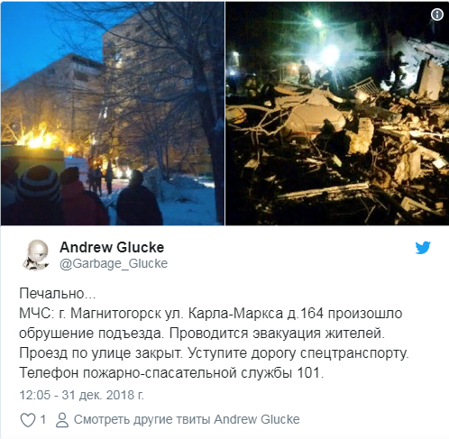 Обрушение подъезда в жилом доме в Магнитогорске. 31 декабря 2018