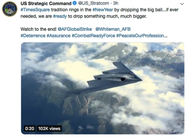 Стратегическое командование вооружённых сил США извинилось за "новогоднюю" шутку в соцсетях. Неудачный юмор о сбросе бомбы относился к церемонии опускания праздничного шара на площади Таймс-сквер в Нью-Йорке, который традиционно проходит в канун Нового года.