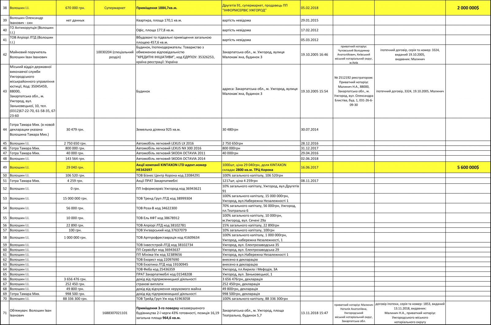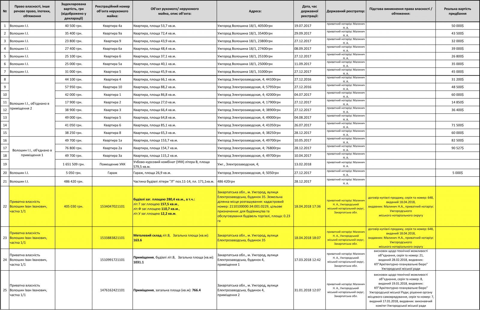 В 2017 году депутат Ужгородского городского совета Иван Волошин приобрел 29 квартир.