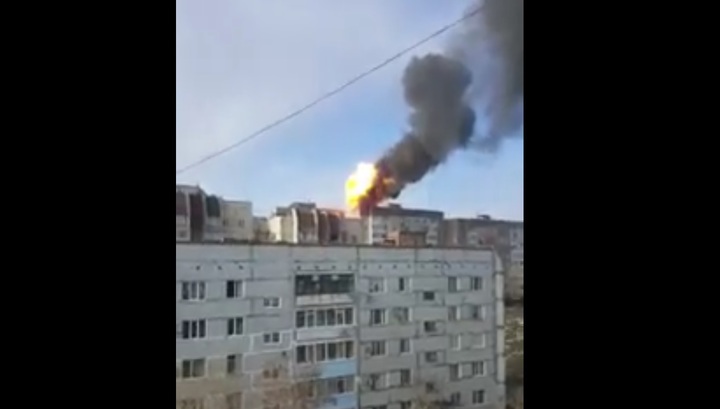Взрыв газового баллона на крыше девятиэтажного жилого дома в Крыму попал на видео