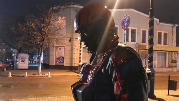В центре Симферополя пьяный мужчина облил краской памятник "вежливым людям". Вандал задержан сотрудниками правоохранительных органов.