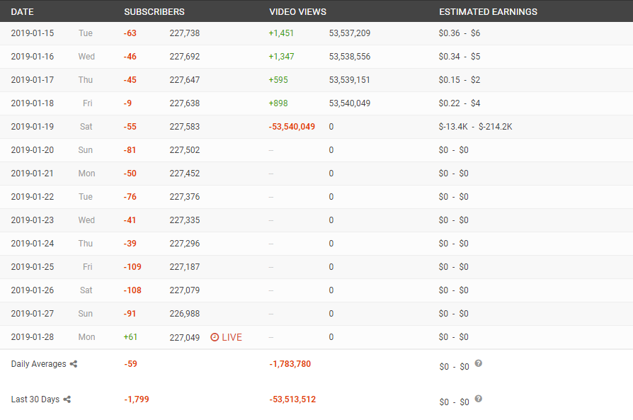 19 января с канала Собчак пропали абсолютно все ролики. По данным Socialblade, на удаленных видео было 53,5 млн просмотров. Судя по первой публикации, журналистка планирует выпускать на нем видео в формате интервью. Источник