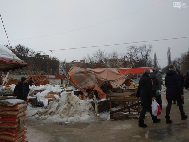 Возле станции метро Холодная Гора в Харькове в ночь на воскресенье, 3 февраля, обвалился торговый павильон на рынке Сказка.