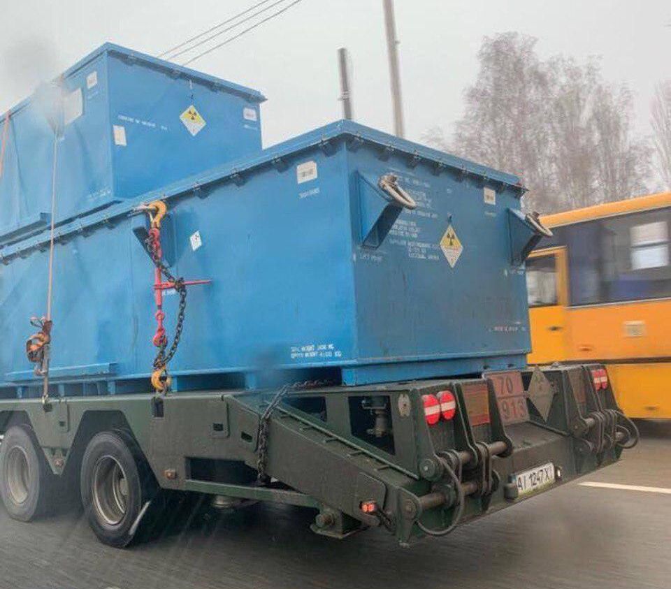 «Пишут, что вот так выглядит перевозка ядерного топлива Westinghouse на Большой окружной в Киеве. Средь бела дня. Главное, чтобы не встретился танк. Но суть не в этом.