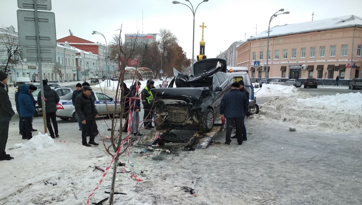 Автомобиль BMW, в салоне которого было семь человек, врезался в дом в Ульяновске. Видео