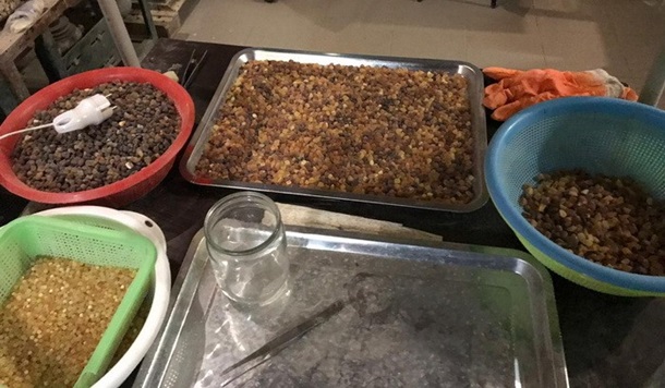 Во время обысков в цеху Одесской области правоохранители изъяли почти шесть тонн янтаря-сырца, расфасованного и отобранного для огранки, а также более полтонны обработанного камня.