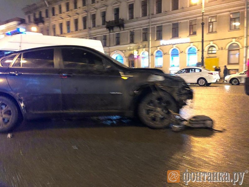 К половине первого ночи уже 24 февраля черная BMW X6 с наглухо затонированным лобовым стеклом проскочила перекресток с Литейным и пошла побыстрее. Продолжалось недолго. Метров через пятьдесят, возле дома 53, иномарка пошла на обгон, задев «Мерседес», потом чиркнула по «Шкоде Октавия», и БМВ выкинуло на тротуар. Машина вильнула, чуть задев фонарный столб.