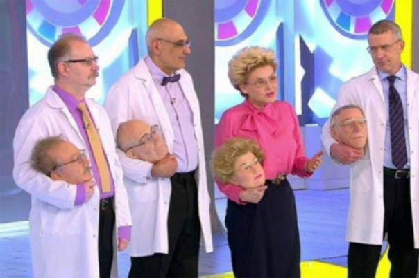 Третье место. Когда все обсуждали в сети и на страницах СМИ очередной эфир программы Елены Малышевой, в ходе которого она представила публике поющую и танцую матку, женский детородный орган, я озвучил предположение, что Малышева просто психически нездоровый человек. В принципе, кто наблюдал за ее эфирами, со мной согласился. Но матка это не самый лучший хит от Малышевой. Весеннее обострение коснулось и ее. Ведущие программы о здоровье «Жить здорово» принесли в студию свои «снесенные головы». Таким образом они проиллюстрировали эффект, который оказывает на человека болезнь Альцгеймера. Выпуск доступен на сайте Первого канала. «Разум. Использовать или потерять? Как вы будете стариться? Будете ли вы узнавать близких и любимых людей? Будете ли вы что-то помнить или время снесет вашу голову с плеч так, как мы сегодня вышли со своими снесенными головами?» — обратилась к студии руководитель передачи Елена Малышева. Жаль, очень жаль, что в России уничтожили принудительную психиатрию…