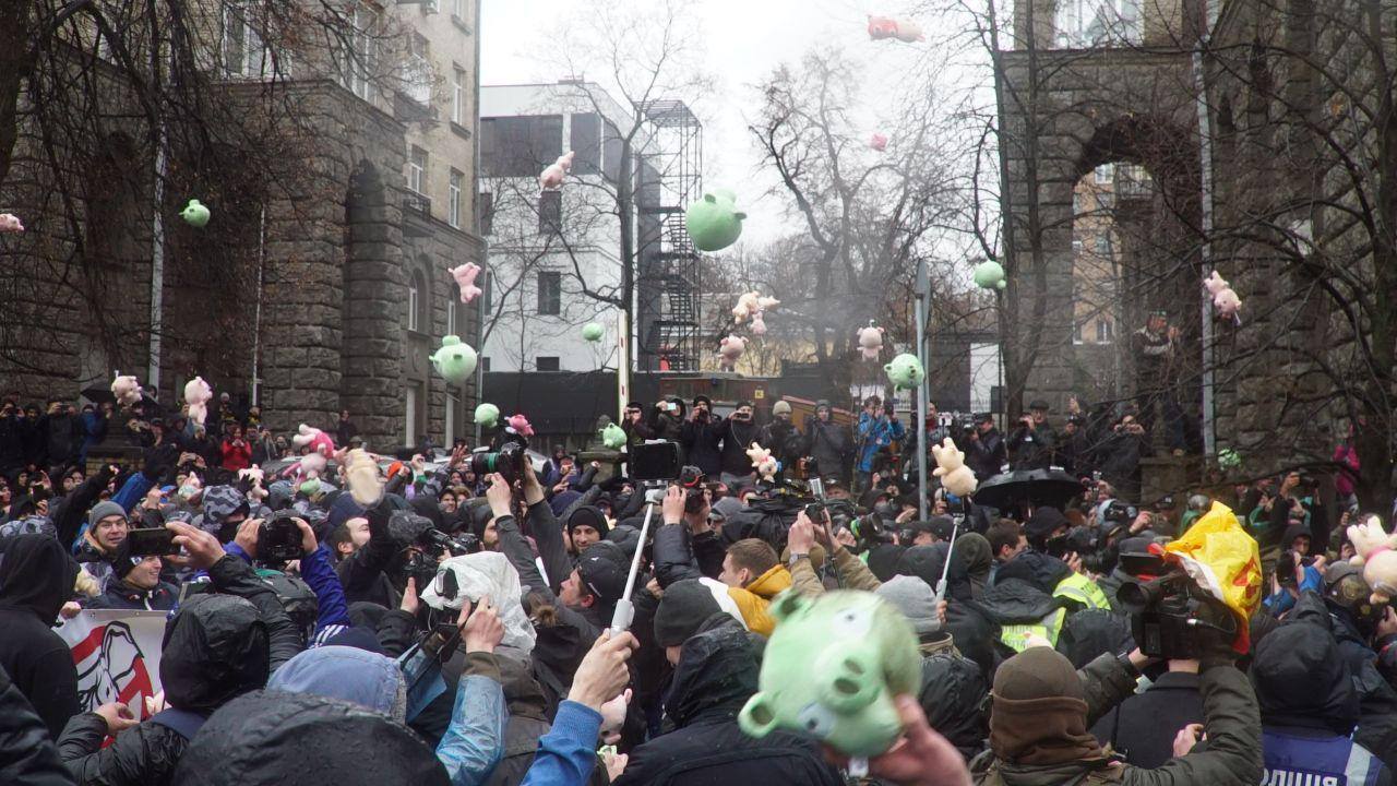 «Сегодня свинки, завтра – камни», – прокомментировал акцию сочувствующий «Нацкорпусу» экс-пресс-секретарь СБУ Станислав Речинский в своем блоге.