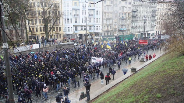 Националисты кричали: «Слава Украине», «Слава нации», «Свинарчуков-мародёров за решётку». К акции также подключился один из основателей националистического батальона «Азов» Андрей Билецкий. Несмотря на то, что в самом «Нацкорпусе» говорят уже о десятитысячном шествии, по разным данным, в ходе движения колонна выросла только до двух тысяч.