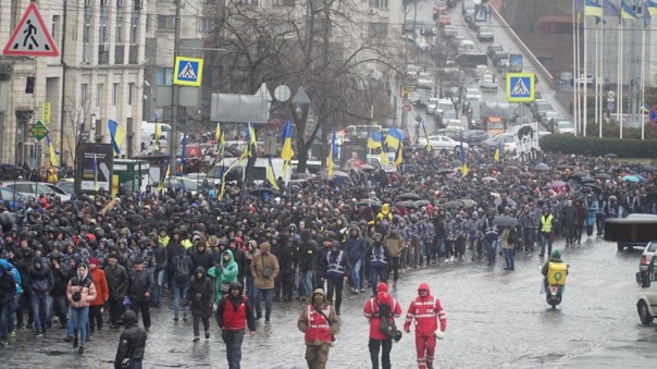 Колонна боевиков «Нацкорпуса» и сочувствующих, собравшихся сегодня в очередной раз на Майдане с требованием привлечь к ответственности окружение Петра Порошенко, причастного к коррупционному скандалу вокруг закупок комплектующих для армии, двинулась в сторону администрации президента, передаёт корреспондент «ПолитНавигатора».