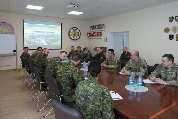 "В Центре разминирования Главного управления оперативного обеспечения Вооруженных сил Украины состоялась первая встреча командования Центра с военнослужащими Вооруженных сил Канады, которые в рамках восьмой ротации прибыли в Украину", - говорится в сообщении.