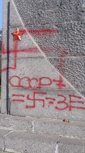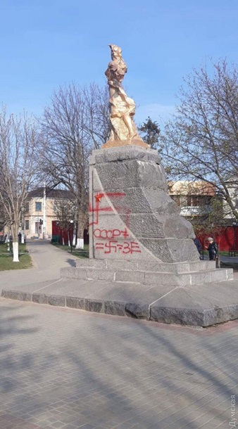 В Подольске Одесской области в среду, 10 апреля, разрисовали памятник Слава труду, расположенный возле железнодорожного вокзала. Об этом пишет Думская.
